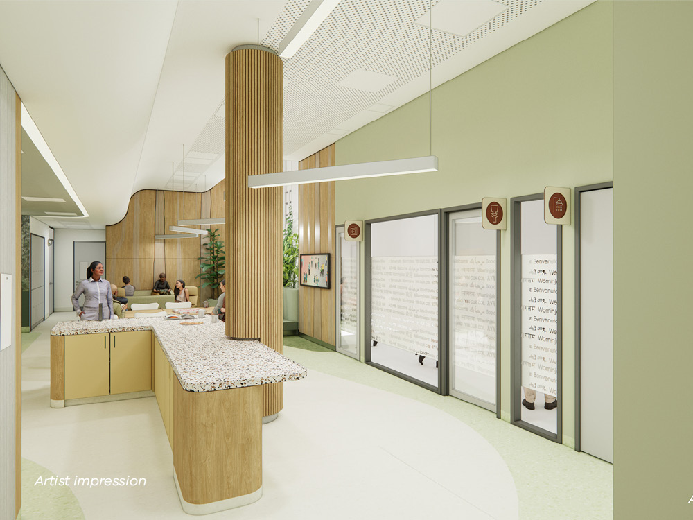 We’re transforming the interior of the building to create a safe, modern and welcoming Community Health Hub, featuring:
