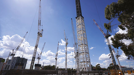 Five of the 10 cranes will be used to construct the main hospital tower.
