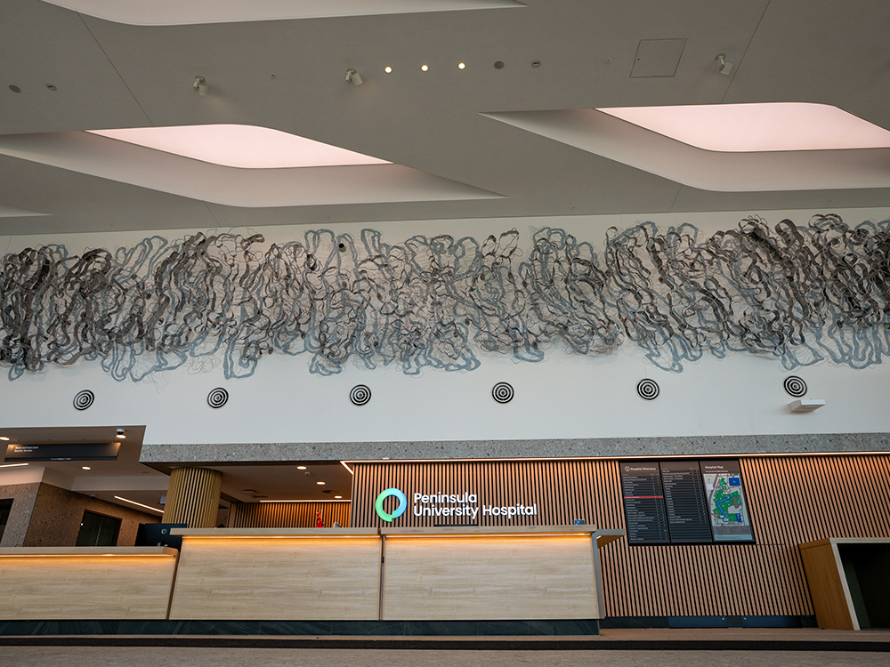 Artworks commissioned for the new tower have been installed, bringing calm and connection to spaces across the bigger, better Frankston Hospital.