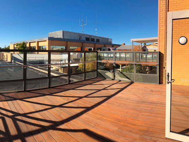 Ballarat and Aboriginal District Co-operative: A corridor connecting the old building with the new medical centre. Lights are engraved with Aboriginal motifs